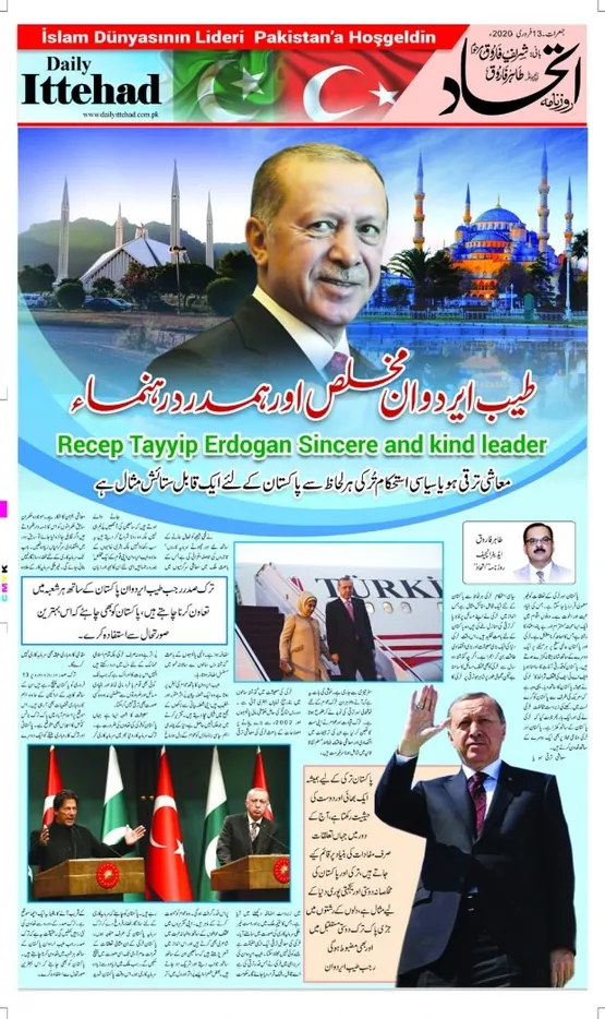 Başkan Erdoğan bir dizi ziyaret için Pakistan'a gitmişti. Bu ziyaret Pakistan basınında geniş yankı uyandırdı. Ülkenin yüksek trajlı gazetelerinden Daily Ittehad, ziyarete özel ek çıkardı. Gazete Türkçe olarak, “İslam dünyasının lideri Pakistan’a hoş geldin” ifadelerini kullandı.
