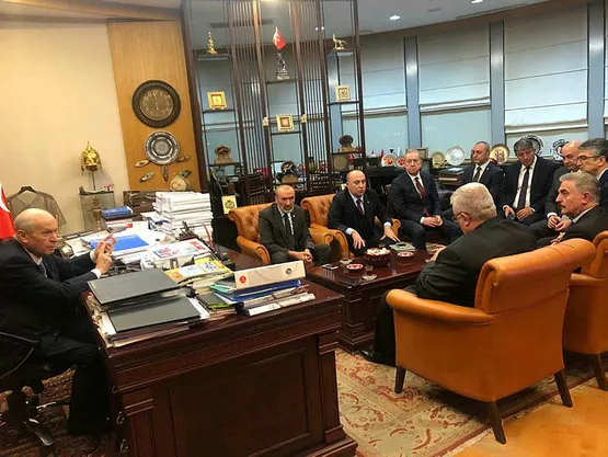 MHP Genel Başkanı Devlet Bahçeli, divan üyeleri ile birlikte İdlip'deki gelişmeleri takip ediyor.