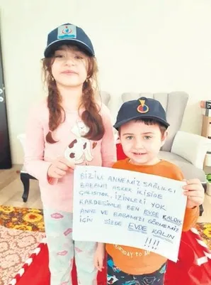 SAĞLIK Bakanı Fahrettin Koca, twitter hesabından kendisine iletilen bir mesajı paylaştı. Koca'nın yaptığı paylaşımda bir erkek ve bir kız kardeş ellerinde küçük bir pankart tutuyor. Koca mesajı, "Bu mesaj Samsun'dan geldi. Mesajı herkes alsın istedik" diyerek paylaştı. Mesajda "Bizi annemiz sağlıkçı, babamız asker. İkisi de çalışıyor. İzinleri yok. Kardeşimle ben evde kaldık. Anne ve babamızı görmemiz için siz de evde kalın" yazıyor.