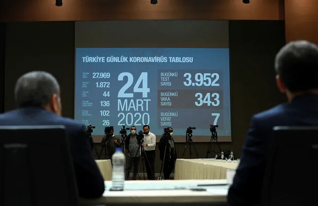 Sağlık Bakanlığı Türkiye Geneli Koronavirüs Tablosu'na göre vaka sayısı 1872, yoğun bakım hasta sayısı 136, entübe hasta sayısı 102, iyileşen kişi 26.
