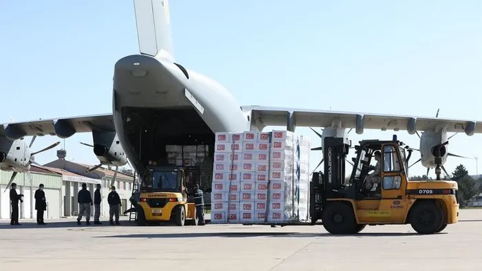 Türkiye'nin, yeni tip koronavirüs (Kovid-19) salgını nedeniyle gönderdiği tıbbi yardım İngiltere'ye ulaşırken İngiliz yetkililer, sağlık malzemeleri için Türkiye'ye teşekkür etti.