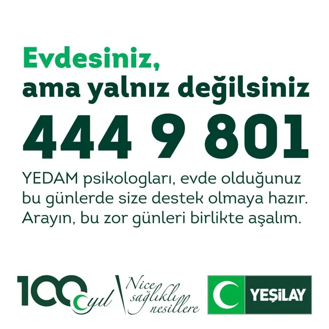 YEŞİLAY'IN 444 9 801 ÜCRETSİZ PSİKOLOJİK DESTEK HATTI
