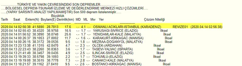 KANDİLLİ RASATHANESİ SON DEPREMLER LİSTESİ İÇİN TIKLAYINIZ