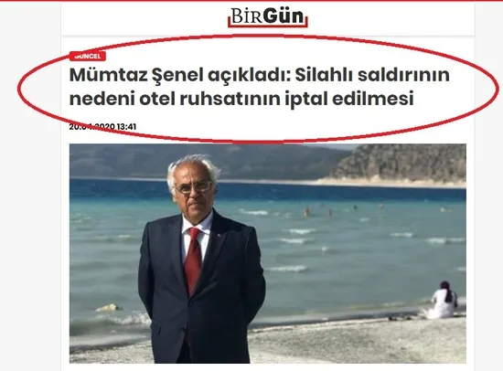 Yeniçağ Gazetesi, internet sitesinin eski Genel Yayın Yönetmeni Batuhan Çolak: "Salda Gölü'ne iş makineleriyle girip talan etmişlerdi. Bu skandalı kamuoyuna duyuran gölün bağlı olduğu Yeşilova'nın Belediye Başkanı Mümtaz Şenel'di. Sabaha karşı "Polisiz" denilerek kapısı çalındı, ama mafyaydı. Dışarı çıkardılar. Kendisine 3 kurşun, eşine 2 kurşun sıktılar!"