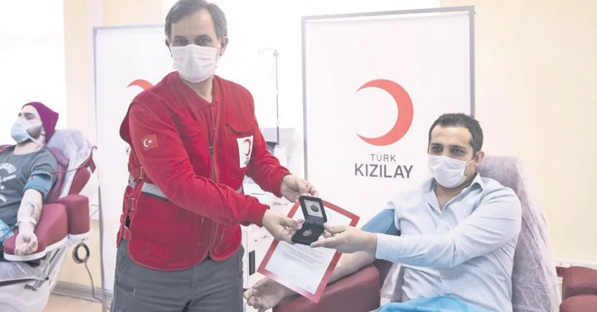 Türk Kızılay tarafından, koronavirüs tedavisi görüp iyileştikten sonra immün plazma bağışı yapanlara madalya verildi. Türk Kızılay Genel Müdürü İbrahim Altan, Orta Anadolu Bölge Kan Merkezi'ndeki düzenlenen törende yaptığı konuşmada, "Bugüne kadar 281 adet immün plazma alındı. Türk Kızılay olarak, üç kez immün plazma bağışında bulunanlara Övünç Madalyası Beratı, iki kez bağışta bulunanlara Madalya Beratı verme kararı aldık" dedi. dedi. Övünç Madalyası Beratı verilen doktor Kürşat Reşat Demir "Bağış yapmak beni mutlu etti" derken Madalya Beratı takdim edilen doktor Hasan Balıkçı ise "Bunu üykeme bir vefa borcu olarak görüyorum" diye konuştu.