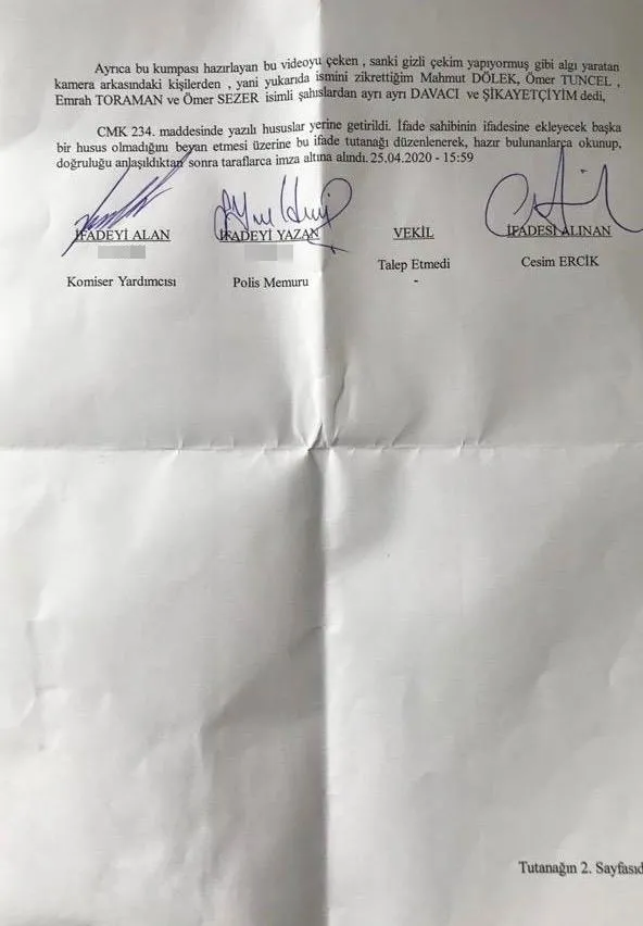 AK Parti Mersin İl Başkanı avukat Cesim Ercik, Mersin Erdemli ilçesinde çekilen kurgu görüntüler hakkında açıklamada bulunmuş, "Söz konusu video ve bu videodaki şahıslar ile ilgili olarak AK Parti Mersin İl Başkanlığı olarak bu videonun kim ya da kimlerin yönlendirmesi ile yapıldığının araştırılması için suç duyurusunda bulunulmuştur" ifadelerini kullanmıştı.