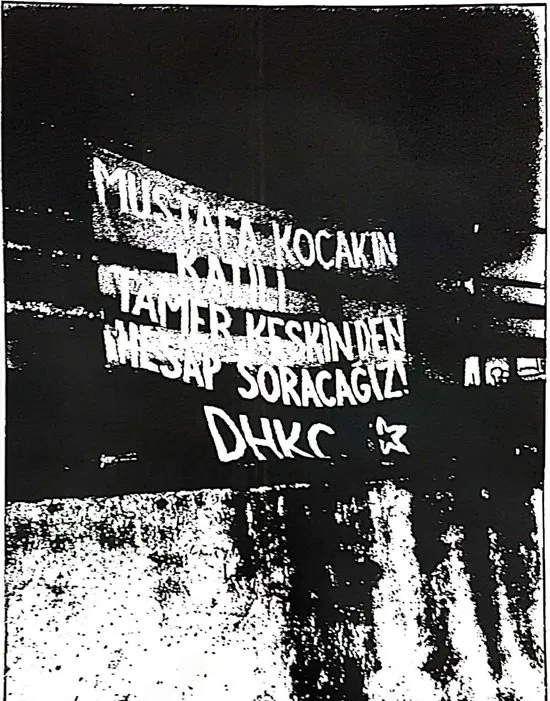 İstanbul Çağlayan Adliyesine yakın olan Gürsel Mahallesinde harekete geçen DHKP-C'li teröristler adliyenin meydanından geçen yaya yoluna, 'Mustafa Koçak'ın katili Tamer Keskin'den hesap soracağız! DHKP-C' şeklinde pankart astılar. Akşam saatlerinde emniyet güçleri tarafından ele geçirilen pankartı kimlerin astığı konusunda araştırma devam ediyor.
