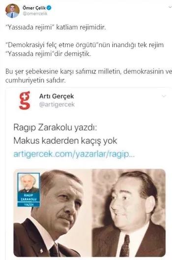 Cumhurbaşkanlığı İletişim Başkanı Fahrettin Altun tarafından, Cumhurbaşkanı Recep Tayyip Erdoğan ile merhum Başbakan Adnan Menderes'in fotoğraflarına yan yan yer vererek darbe ve idam tehdidi içeren "Makus kaderden kaçış yok" başlıklı yazı nedeniyle Ragıp Zarakolu ve Arti Media hakkında suç duyurusunda bulundu. Altun'un avukatı Sezgin Tunç tarafından İstanbul Cumhuriyet Başsavcılığı'na verilen suç duyurusu dilekçesinde, müvekkili Fahrettin Altun'un, Cumhurbaşkanlığı İletişim Başkanı olduğu vurgulanarak, suç duyurusunun vatandaş olarak ülkesine, milletine ve Cumhurbaşkanı Erdoğan'a karşı sorumluluğu dolayısıyla yapıldığı belirtildi.