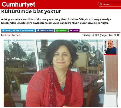 İzmir Karşıyaka Hâkimi Ayşe Sarısu Pehlivan, DHKP-C sanığı olarak yargılandığı sırada örgüt talimatıyla açlık grevine başlayıp geçtiğimiz günlerde kaldırıldığı hastanede ölen İbrahim Gökçek'in ardından sosyal medya hesabından Gökçek’i masumlaştırıcı nitelikte tepki çeken paylaşımlarda bulunmuştu. HSK, paylaşımlar sonrası süratle harekete geçmiş ve İzmir Karşıyaka Hâkimi Ayşe Sarısu Pehlivan hakkında soruşturma başlatıp müfettiş göndermişti. Tüm bu gelişmelerin ardından hakim Pehlivan, siyasileri aratmayacak demeçleri art arda sıraladı. Hakim kimliği olan Pehlivan, Cumhuriyet, Alman yayın kuruluşu Deutsche Welle, Birgün, İz Gazete ve T24 gibi yayın kuruluşlarına özel röportajlar verdi.