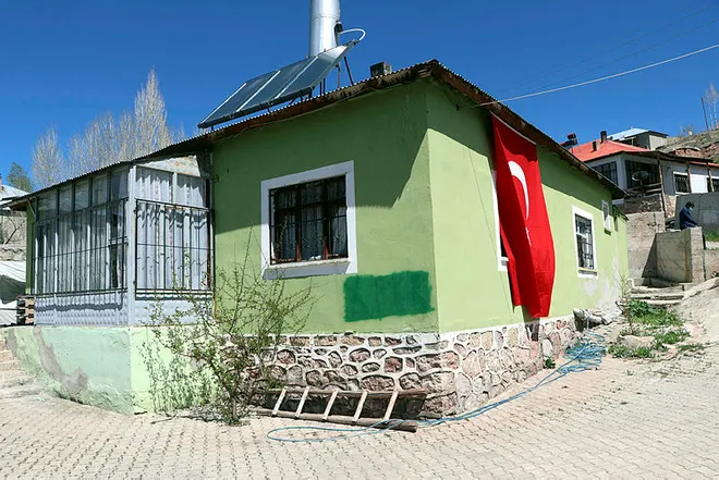 Özalp ilçesinde dün Vefa Sosyal Destek Grubu'na yönelik düzenlenen terör saldırısında şehit olan belediye çalışanı Yıldırım Demir'in ilçedeki evine Türk Bayrağı asıldı. Yıldırım Demir'in daha önce terör örgütü PKK tarafından tehdit edildiği, 3 ay önce de yaşadığı evin duvarına örgüt üyeleri tarafından 'PKK' yazılıp, çarpı işareti konulduğu belirtildi. Demir ailesinin PKK yazan ve çarpı atılan bölümü, farklı renkteki bir boyayla yama yapmak suretiyle boyayarak kapattığı görüldü.