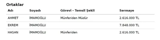 İMAMOĞLU İNŞAAT TEKLİF GÖNDERDİ