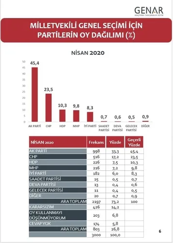 Genar Başkanı İhsan Aktaş: “Bu Pazar seçim olsa Cumhur İttifakı 2 yıl içerisinde oyunu 2 puan arttırarak yüzde 55.2 oy oranı ile ipi göğüslüyor. Diğer partilerden de oy alan Cumhurbaşkanı’nın oyunun bunun biraz da üzerinde olduğunu düşünüyoruz. En beğenilen lider ise en yakın rakibine 4 kat fark atan Cumhurbaşkanı Erdoğan. Yeni kurulan partiler toplumda heyecan yaratmadı. CHP’de yerel seçimlerde yakaladığı rüzgarı bir yılda kaybetti.”