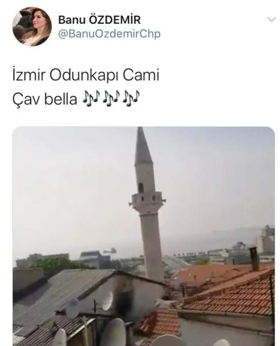 İzmir'de bugün akşam saat 17.00 sıralarında garip bir olay yaşandı. Kimliği belirsiz kişilerce merkezi sistemle ezan okunan Konak, Karşıyaka, Çiğli ve Buca ilçelerindeki bazı camilerin frekansına korsan bir şekilde müdahil olunarak cami hoparlörlerinden İtalyan partizan marşı olarak bilinen 'Çav Bella' çalındı. Müziği duyanlar kulaklarına inanamadı.