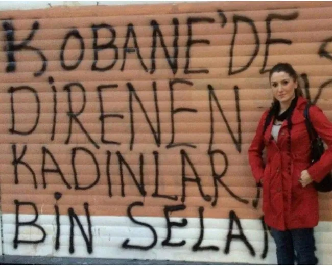 Camilerden Çav Bella şarkısı çalan video görüntülerini paylaşarak provokasyonu teşvik eden CHP'li Banu Özdemir'in "Kobane de direnen kadınlara bin selam" yazısı önünde çektiği fotoğraf da ortaya çıkmıştı.