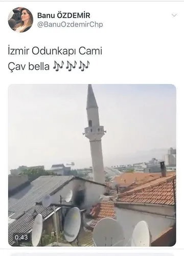 İzmir’de önceki gün 4 cami hoparlöründen ‘Çav Bella’ dinletenler hakkında soruşturma açıldı. Konuyla ilgili görüntüleri paylaşan CHP eski İzmir İl Başkan Yardımcısı Banu Özdemir gözaltına alınırken tehlikeli provokasyon dün de sürdü