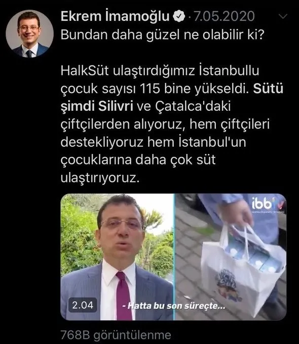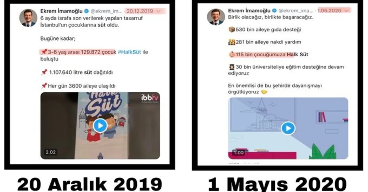CHP’li Ekrem İmamoğlu, 20 Aralık 2019 tarihli iletisinde altı ayda 3-6 yaş arası 129 bin 872 çocuğa halk süt dağıttıklarını belirtti. 7 Mayıs 2020 tarihinde ise İmamoğlu, yeni bir paylaşım yaptı. Halk süt ulaştırdıkları İstanbullu çocuk sayısının 115 bine yükseldiğini ifade etti. İmamoğlu’nun her iki açıklamasındaki rakamlara bakıldığında halk süt dağıtımında eksilme olduğu yükselme yaşanmadığının görüldüğü ortaya çıktı