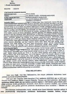 Muğla 1. İdare Mahkemesi, Özdil ailesinin avukatlarının "Yürütmeyi Durdurma Talebinin" reddine karar verdi.
