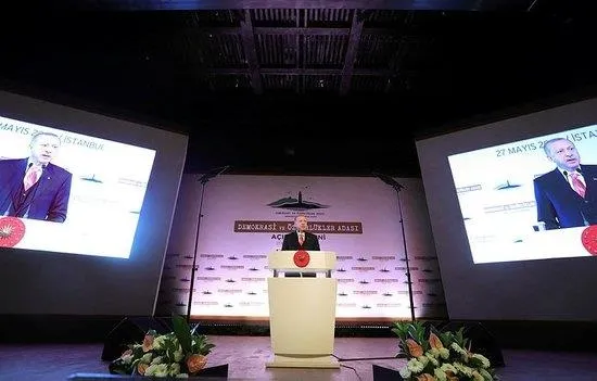Burasını Demokrasi ve Özgürlükler Adası haline getirmek bize nasip oldu. Tüm sembolleriyle Demokrasi ve Özgürlükler Adası istiklal ve istikbal mücadelesinin nişanesi olacaktır. Ülkemizdeki tüm darbelerin temel karakteri, milletimizin değerlerine düşmanlıktır. Ülkemizde bugün demokrasimize gölge düşürmeye çalışanlara dikkat edin. Hepsi de 27 Mayıs hayranıdır. Oyunları bozulunca, milli iradenin desteğini alma ümitleri keslince bunlarda her yol darbeye çıkmaya başladı. Darbeciler ve onları yönlendirenler hep aynı kodlarla hareket etmişlerdir.