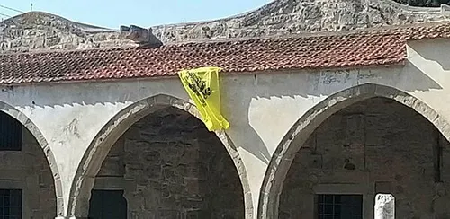 Son dakika: Güney Kıbrıs'ta camiye Bizans bayrağı asılmasına tepkiler sürüyor
