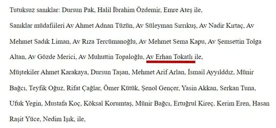 Bu kez de Ankara Cumhuriyet Başsavcılığı'nca hakkında 'Askeri sırları temin ettiği' iddiasıyla yürütülen soruşturma kapsamında tutuklanan ODA TV Ankara Haber Müdürü Müyesser Uğur Yıldız'ın avukatı Erhan Tokatlı'nın bazı FETÖ'cülerin avukatlığını yaptığı ortaya çıktı.'Zincirleme Olarak Devletin Güvenliğine ve Siyasal Yararlarına İlişkin Gizli Kalması Gereken Bilgileri Açıklama' suçundan TSK personeli Astsubay E.B. ile tutuklanan Yıldız'ın avukatının üst düzey FETÖ'cü eski askerî yargı personelinin davasında bazı sanıkların avukatlığını yaptığı saptandı.