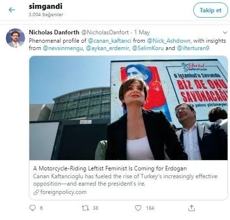 Simge Andı'nın Twitter paylaşımları, Gezi Parkı terörünün destekçisi olduğunu ve CHP'li Canan Kaftancıoğlu hayranı olduğunu ortaya çıkardı.