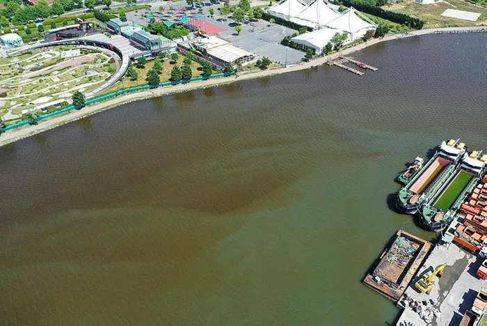 Temizlenerek maviliğe bürünen Haliç yeniden çamura döndü | Video