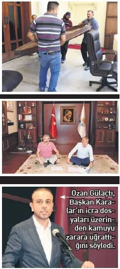 Yol yapım şirketine borcu ödemediği için CHP'li Adana Büyükşehir Belediye Başkanı Zeydan Karalar'ın makam koltuğunun haczedilmesinin 'perde arkası'nda icra vurgunu çıktı. Büyükşehir Belediye Meclis Üyesi, AK Parti Grup Başkanvekili Ozan Gülaçtı, makam odasına haciz işlemi başlatan avukatın mart ayına kadar ASKİ'nin "sözleşmeli avukatı" olduğunu öne sürdü. Gülaçtı, borca yapılan itirazla birlikte kamu malının zarara uğratıldığını ve inkar tazminatlarıyla birilerinin zengin edildiğini söyledi.