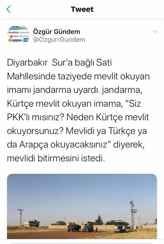 "Düzmece iddiayla ilgili haberde kullanılan fotoğraflar dahi; Satı Köyü'ne ve Sur ilçesi jandarma araçlarının fotoğrafı değildir."