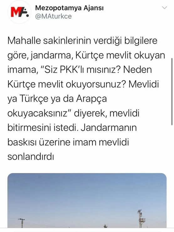 AK Parti MKYK üyesi ve Doğu Anadolu Teşkilat Bölge Koordinatörü Alaattin Parlak; terör örgütü PKK’ya yakın olduğu iddia edilen Mezopotamya Ajansı’nın, “Sur’un bir kırsal mahallesinde imamın Kürtçe okuduğu mevlit jandarma tarafından kesilerek, ‘Mevlidi ya Türkçe ya da Arapça okuyacaksın’ uyarısı yapıldı” haberinin gerçek dışı olduğunu açıkladı.