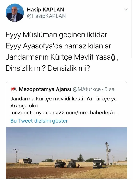 Alaattin Parlak; Kürtçe'nin önündeki engellerin kaldırıldığını ve toplumsal alanın birçok noktasında Kürtçe'nin çok rahat konuşulduğunu hatırlatarak, "Böyle düzmece haberin yayınlaması terör örgütünün yöntemlerinden biridir" dedi. "HABER KURGULANMIŞ VE MASA BAŞINDA YAZILMIŞ" Alaattin Parlak, şunları söyledi: "Bugün bir haber ajansında yayınlanan ve tamamen gerçek dışı olan Kürtçe Mevlüt okunmasına müdahale edildiği şeklinde haberin kurgulanmış, masa başında yazılmış ve tamamen algı oluşturmaya yönelik asılsız bir haberdir."