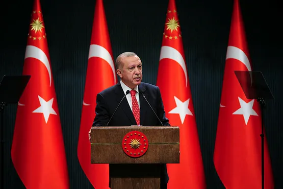 Cumhurbaşkanlığı Külliyesi'nde düzenlenen Cumhurbaşkanlığı Kabine Toplantısı'nın ardından millete seslenen Erdoğan, Türkiye'nin küresel gündemlere ilişkin irade ortaya koyduğunda, bölgesel haklarıyla ilgili adımlar attığında ekonomi üzerinden bir hesaplaşmanın devreye sokulduğunu vurguladı.