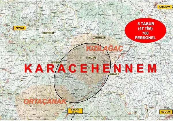 İçişleri Bakanlığı'ndan yapılan açıklamada, bölücü terör örgütünü tamamen ülke gündeminden çıkarmak ve bölgede barındığı değerlendirilen teröristleri etkisiz hale getirmek maksadıyla Bingöl İl Jandarma Komutanlığınca "Yıldırım-6 Karacehennem Operasyonu"nun başlatıldığı kaydedildi. Operasyona Jandarma Komando, Jandarma Özel Harekat (JÖH), Polis Özel Harekat (PÖH) ve güvenlik korucularından 47, operasyonel timdeki 700 personel katılıyor. Yurt içinde terörün tamamen ortadan kaldırılmasına yönelik yürütülen Yıldırım 1-2-3-4-5 operasyonları kapsamında bugüne kadar 22 terörist etkisiz hale getirilmiş, 31 mağara, sığınak ve depo imha edilirken çok sayıda silah-mühimmat, gıda ve yaşam malzemesi ele geçirilmişti. Öte yandan Irak'ın kuzeyindeki Zap bölgesinde saldırı hazırlığındaki PKK'lı iki terörist etkisiz hale getirildi.