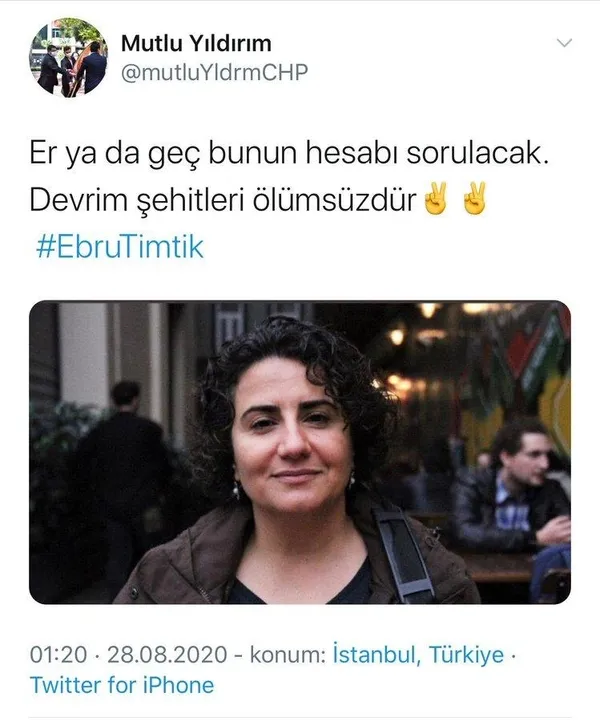 CHP'liler ise Timtik'in ölümü ardından çeşitli mesajlarla arkasında durdu. Avcılar Gençlik Örgütü yöneticisi Mutlu Yıldırım'da, " Er ya da geç bunu hesabı sorulacak. Devrim şehitleri ölümsüzdür"mesajını paylaştı.