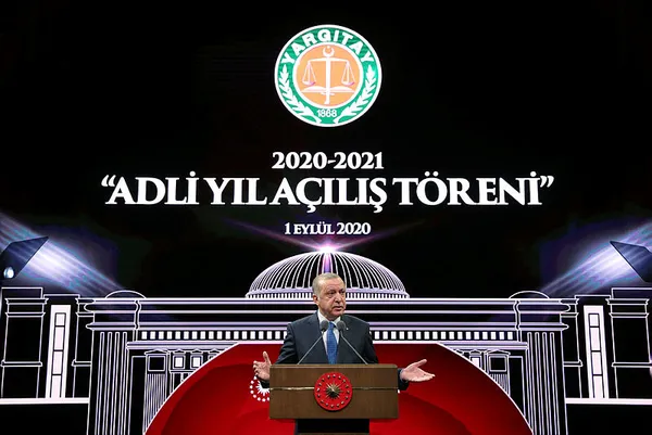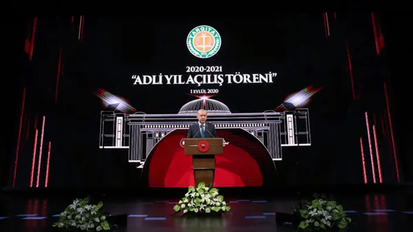 Başkan Recep Tayyip Erdoğan, "Kendilerini büyük, güçlü, müreffeh, yenilmez olarak gören kimi devletlerin, diğerlerine karşı sergiledikleri zalimlikleri örtmeye artık siyasi ve diplomatik laf cambazlıkları da yetmiyor." dedi. Başkan Erdoğan, Beştepe Millet Kongre ve Kültür Merkezi'nde düzenlenen "2020-2021 Adli Yıl Açılış Töreni"ndeki konuşmasına, yeni adli yılın, yargı mensupları başta olmak üzere, ülke ve millet için hayırlara vesile olmasını dileyerek başladı. Yeni adli yılda hakimlere, savcılara, avukatlara ve adalet sisteminin tüm taraflarına başarı temennisinde bulunan Erdoğan, vazifeleri başında hayatlarını kaybeden hakim ve savcılara da Allah'tan rahmet diledi.