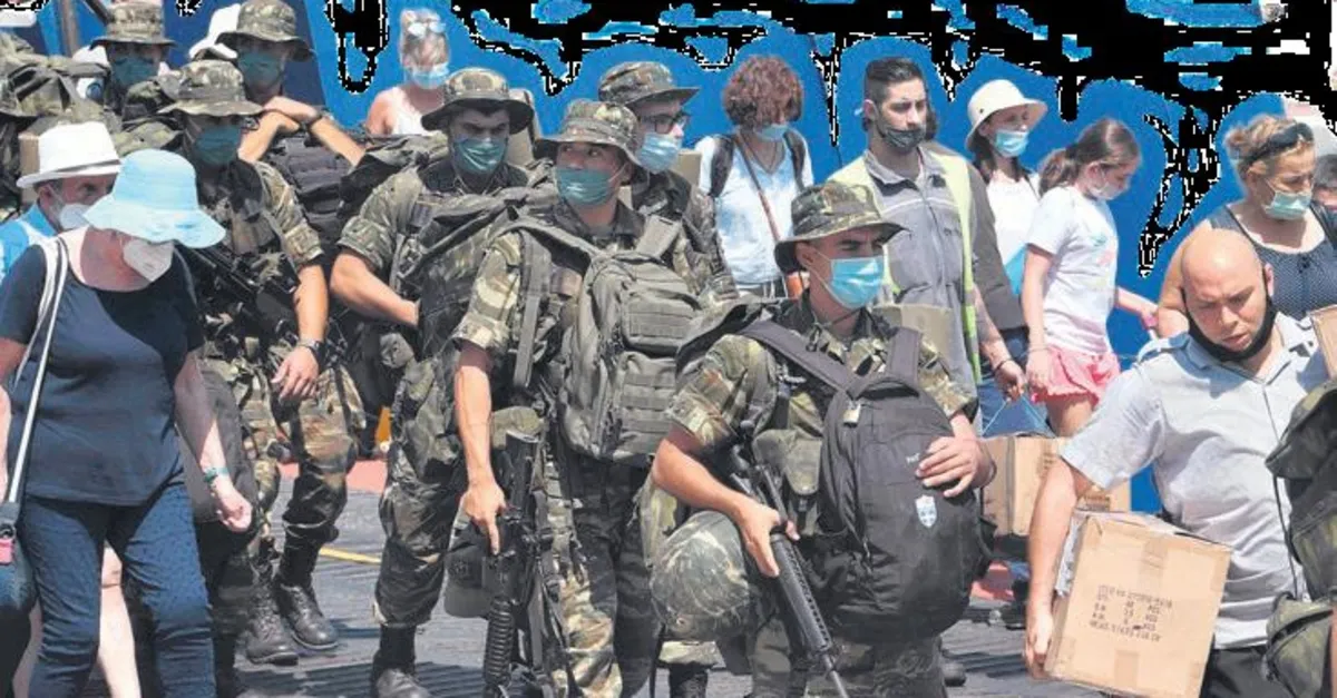 Uluslararası hukuku çiğneyerek 60'lı yıllardan bu yana adalara asker yığan Yunanistan, bazı adalarda tümen bazı adalarda tugay seviyesinde birlik bulunduruyor. Yunan ordusu, Rodos ve Midilli'ye 10 bin askerden oluşan iki tümen, Ege kuzeyindeki, Sakız, Sisam, Ahikerya, İstanköy adalarına ortalama 4'er bin askerden oluşan tugaylar yerleştirdi. Adalarda bulunan Yunan askeri sayısının 50 binden az olmadığı değerlendiriliyor. Sürekli uluslararası hukuka atıf yapan ama altında imzası olan uluslararası anlaşmaları bile hiçe sayan Yunanistan'ın, asker bulundurduğu Midilli, İstanköy ve Rodos adasına jet harekâtı için havaalanı inşa ettiği, savaş uçakları yerleştirdiği, bazı adalara da mekanize birlik konuşlandırdığı kaydediliyor. Yunanistan son densizliğini Meis'e komando göndererek yaptı. Buna karşın tavizsiz duruşunu sürdüren Türkiye savaş gemilerini hazır bekletiyor. Türk Deniz Kuvvetleri'ne bağlı 2 fırkateynden biri Kaş'ın hemen karşısındaki Limanağzı Koyu'nda iken diğer fırkateyn ara ara seyri sefere çıkıyor.