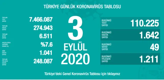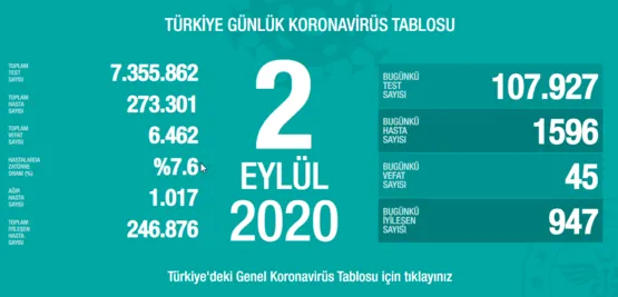 2 EYLÜL KORONAVİRÜS VERİLERİ