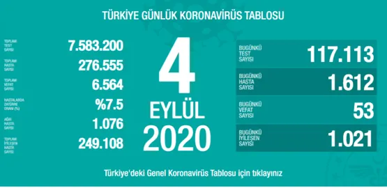 4 EYLÜL KORONAVİRÜS VERİLERİ