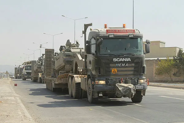 Suriye sınırındaki Hatay'ın Reyhanlı ve Kumlu ilçelerinde konuşlu tanklar, tırlara yüklenerek Edirne istikametine doğru yola çıktı. Yaklaşık 40 tank yüklü iki tır konvoyu bugün öğleden sonra Suriye sınırından ayrıldı.
