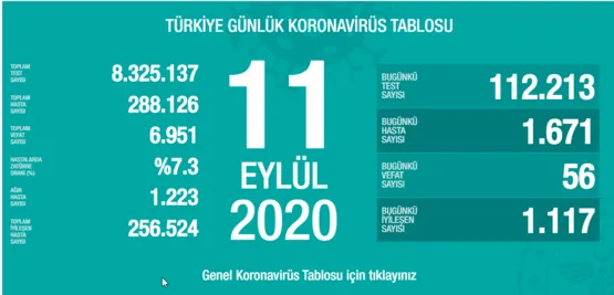11 EYLÜL KORONAVİRÜS VERİLERİ