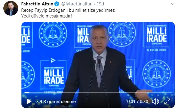 Altun'dan videolu mesaj "Recep Tayyip Erdoğan’ı bu millet size yedirmez."