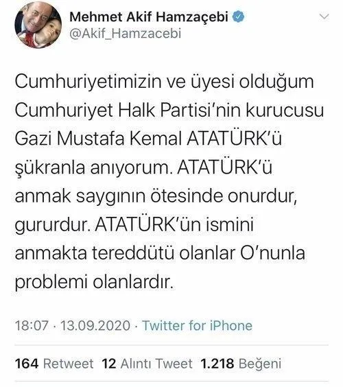 Barış Yarkadaş (Eski Milletvekili): Gazi Mustafa Kemal Atatürk, Türkiye Cumhuriyeti'nin ve partimiz CHP'nin kurucusudur. Adını her yerde ve her koşulda; onurla, gururla söyleriz.