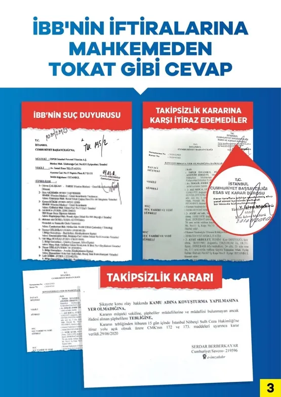 İtham edilen yöneticilerin hiçbir şekilde suç işlemediği, yaptıkları iş ve işlemlerin hukuka uygun olduğu ve iddia sahiplerinin iddialarının asılsız mahkemece kanıtlandı. Yani İBB tarafından ortaya atılan uydurma iddiaların tamamının yalan olduğu tescillendi.