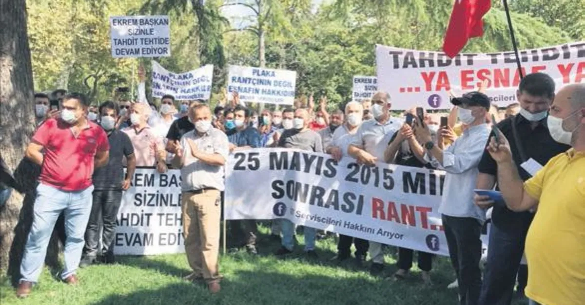 İstanbul Büyükşehir Belediye Başkanı Ekrem İmamoğlu'nun bir televizyon programında 10 bin yeni servis plaka vereceğini duyurması üzerine servis minibüsçüleri eylem yaptı. İBB karşısındaki Saraçhane Parkı'nda pankart açarak protesto gerçekleştiren 250 servis şoförü, "Tahdit sözünüz tehdit oluyor" sloganıyla İmamoğlu'na tepki gösterdi. İmamoğlu aleyhinde slogan atan servis esnafı, verilecek kararın kendi lehlerinde sonuçlanmaması halinde 24 Eylül'de İBB Saraçhane Binası önüne araçlarını bırakacaklarını söyledi. Servisçiler adına konuşan Hasan Hüseyin Arslan, bu işin ekmek davası olduğunu belirterek, "Yanlıştan dönülmezse, CHP ve İmamoğlu her çarşamba sosyal medya ve her platformda protesto edilecek. 24 Eylül'deki UKOME toplantısına esnafımızı arabalarla bekliyoruz. Bu ekmek davasıdır. Siyasi bir tavrımız yok" dedi. Birsen Turan ise, "Koltuğa oturunca bize tehdidi getirdi dayadı. 300 liralık bir işe UBER gidiyor 200 liraya. Zor durumdayız. Senetlerimizi, kredilerimizi kim ödeyecek?" dedi. Hakkı Bal da, "Okullar açılacak hemen hemen. Bütün velilerden ricamız, L plakası olmayan servis esnafına çocuklarınızı emanet etmeyin" diye konuştu.