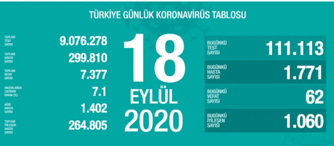 18 EYLÜL KORONAVİRÜS VERİLERİ