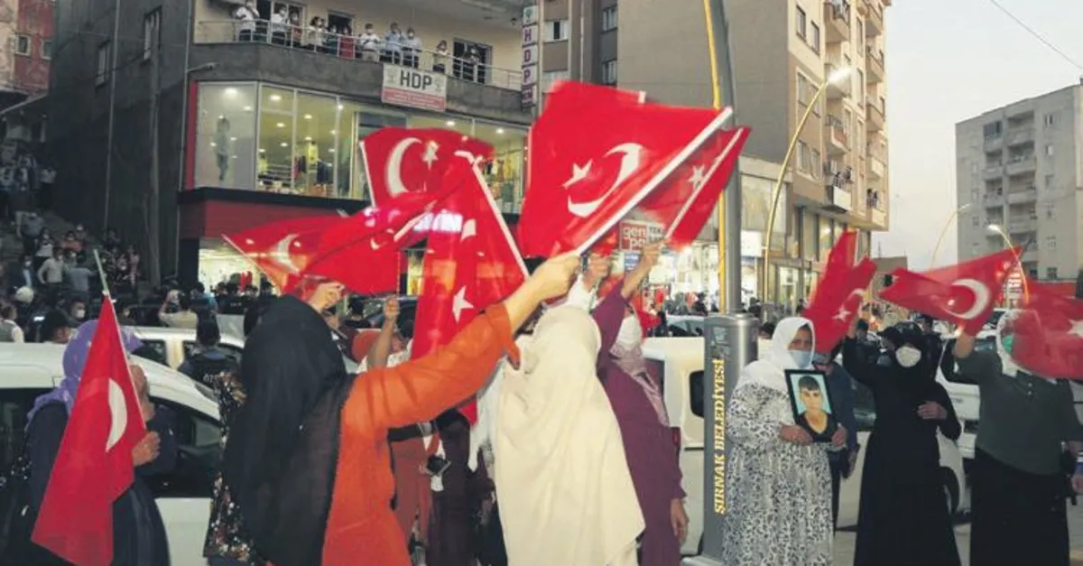 Şırnak'ta, yakınları terör örgütü PKK tarafından dağa kaçırılan aileler, HDP İl Başkanlığı önünde eylem yaptı. PKK'lı teröristler tarafından yakınları dağa kaçırılan bazı kadınlar ile onlara destek olan şehit yakınları ve gaziler, HDP İl Başkanlığı önünde bir araya geldi. Bina önünde toplanan bir grup HDP'linin tepki göstermesi üzerine aileler, zılgıt çekerek "Kahrolsun PKK, kahrolsun HDP", "Şehitler ölmez, vatan bölünmez" sloganları attı. Basın açıklaması sırasında HDP'liler slogan atıp, tencerelere vurarak basın açıklamasını engellemeye çalıştı. Oğlu Metin Üstek için eyleme katılan Emine Üstek sağlığı el verdikçe oğlunu HDP'den istemek için her perşembe eylem yapacağını söyledi. Üstek, "Oğlumu HDP'lilerden başkası onlara teslim etmedi, oğlum onların elleriyle dağa götürüldü. Bu 13-14 yaşındaki çocuklar, nereden dağın yolunu bilecek onlar göstermezse. Neredeyse oğlumu bana getirsinler ben hep buraya oğlumu istemek için gelmeye devam edeceğim" dedi. Teröristlerce 1987'de 12 akrabası katledilen Zehra Güngör ise HDP'nin asla Kürtlerin savunucuları olamayacağını, Kürt kanı dökerek hamileleri, çocukları diri diri yakan PKK'nın siyasi uzantısı olduğunu ifade etti. Eşi kaçırılan Besna Katar ise Kürtçe yaptığı konuşmada eşi Metin'in 16 yıl önce odun toplamak için evden çıktığını ve kendisinden bir daha haber alamadığını söyledi. Daha sonra eşinin PKK'lı teröristlerce kaçırıldığını öğrendiğini ifade eden Katar, "Eşim öldü mü, sağ mı bilemiyoruz. Ondan haber almak için buradayım. Eşimi HDP'den istiyorum çünkü çocuklarımızın, eşlerimizin teröristlerce götürülmesinde onların parmağı var" diye konuştu. HDP önünde bir süre eylemlerine devam eden aileler daha sonra dağıldı.