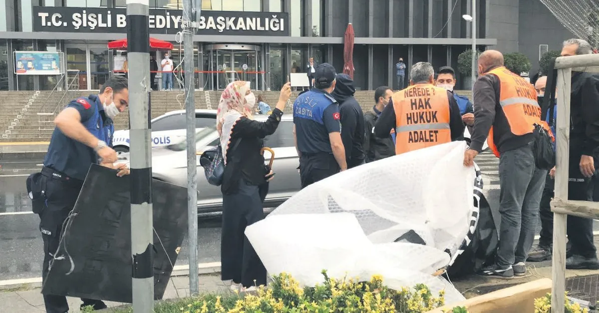 Şişli Belediyesi'nde ise işten çıkarılan Ramazan Çelik'in haklarını alamadığı gerekçesiyle yaptığı başvuru üzerine alınan karar doğrultusunda haciz işlemi gerçekleştirildi. Haciz işlemi için belediye binasına gelen Çelik'in avukatı Abdullah Akyüz ve icra memuru, başta belediye binasına alınmadı. Polis çağırdılar. Sonra da belediyenin kasasında bulunan bin 550 lirayı haczettiler. Şişli Belediye Başkanı Muammer Keskin'in makam odasında haciz işlemi yapmak istenmesi üzerine "Belediye başkanının sekreterinin Kovid-19 hastası olduğu ve odanın karantina alanı olduğu" ifade edilerek belediye görevlilerince makam odasının kapısı açılmayınca çilingir çağrıldı.Çilingir "Elektrik kesilmeden kapı açılamaz. Açılırsa kapı güvenlik sistemine zarar verebilir" deyince odaya girilemedi. Sekreterin odasındaki televizyon haciz işlemi yapılmak için kayıtlara alındı. Akyüz, ödeme yapılmaması halinde haciz için tekrar geleceklerini söyledi. Öte yandan haciz işlemi sürerken belediyenin karşısındaki Çelik'in pankart ve malzemelerine de zabıta müdahale etti.