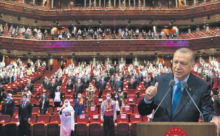 Hamdolsun ülkemizde şeksiz şüphesiz bir şekilde milletin iradesini temsil eden bir Meclis'e sahibiz. Aynı şekilde hiçbir tereddüde mahal bırakmayacak şekilde milletin desteğiyle iş başına gelmiş bir Cumhurbaşkanı ve onun kurduğu hükümet ülkeyi yönetiyor. Güçler ayrılığı erkinin üçüncü ayağı olan yargı, ilk derece mahkemelerinden en yüksek organlarına kadar tüm unsurlarıyla adaletin tesisine hizmet ediyor. Geçmişte adı darbelerle ve cuntalarla anılan ordumuz, sınırlarımız boyunca ve ötesinde destanlar yazıyor. Kurumlarımızın her biri kendi alanında cumhuriyet tarihinde yapılanların tamamını beşe, ona katlayan icraatlar gerçekleştiriyor. Nerede bir zulüm varsa Türkiye orada. Bize bazıları akıl da veriyor. Bu kadar yayılmayın diyorlar. Zulüm var, Libya'da zulüm var. Sessiz kalamayız. Suriye'de 911 kilometre sınırımız boyu zulüm var. Ne yapalım? Sessiz mi kalalım? Öbür tarafta Somali'de zulüm var. Seyir mi edelim? Azerbaycan'da Ermenilerin zulmü var. Bunlar bizim kardeşlerimiz, seyir mi edelim? Biz duramayız. Tarih boyunca ecdadımızın bize yıktığı bir mesuliyet var. Onun için biz durmaz ve oralarda da görevimizi yerine getirmenin gayreti içinde oluruz.