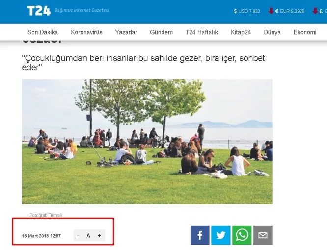 T24 adlı internet sitesinin 18 Mart 2018 tarihinde Twitter hesabından yayınlanan; "'Kimseye zararımız yoktu': Sahilde bira içen gençlere toplam 372 lira para cezası" başlıklı haberde Ekrem İmamoğlu'nun 2020 yılında çekildiği iddia ettiği fotoğrafın aynısı yayınlanmıştı.