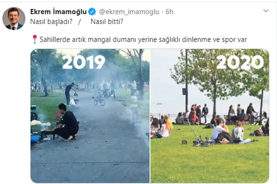 Ekrem İmamoğlu'nun sosyal paylaşım sitesi Twitter'daki resmi hesabından paylaştığı ve 2020 yılına ait olduğunu iddia ettiği fotoğrafın aynısının 26 Nisan 2014 tarihinde Milliyet Gazetesi tarafından yayınladığı ortaya çıktı.