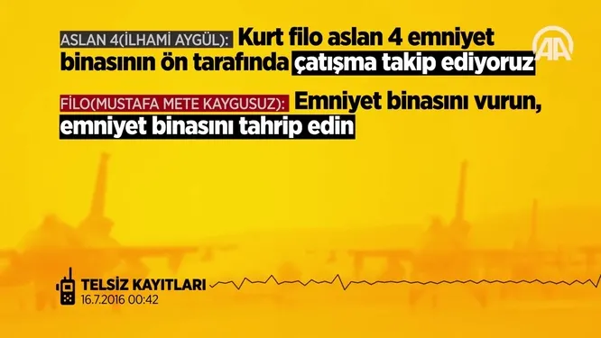 Darbe yöneticileri ile eylem ve iş birliği içerisinde hareket ettiği kaydedilen Kaygusuz'un, "Emniyet binasını vurun, emniyet binasını tahrip edin, Genelkurmay üzerinden alçak uçuş yapın, kaçak saray koordinat için beklemekteyiz, Genelkurmay ve Kızılay Meydanı'ndan MACH üstü geçiş serbest, Kızılay'da cam kaldı mı, kalmayacak kırın hepsini, TOMA'lara top taarruzu atış serbest." şeklinde darbeci pilotlara emirler verdiği belirtiliyor.